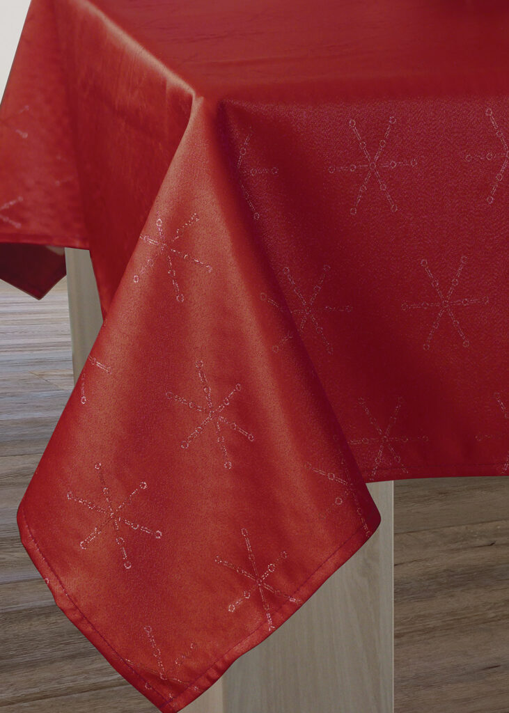 Cette nappe tissée de fils métalliques brillants vous ravira par sa simplicité d'entretien. Elle est idéale pour vos repas de fêtes ! Traitée déperlant et anti-tache, elle peut être lavée en machineà 30°, ses couleurs sont résistantes, elle ne déteint pas. Après un essorage léger, ne la passez pas au sèche linge, elle sèche très rapidement ! Cette nappe peut-être repassée sur l'envers en faisant bien attention à la température du fer qui ne doit pas être trop chaud, adapté à une nappe en polyester. Elle est finie avec un ourlet pour un tombé impeccable. Composition : 8% Métal 92% Polyester - Entretien facile : lavage en machine à 30° , essorage léger, sèche rapidement, repassage superflu. Ne pas exposer au soleil de manière prolongée.