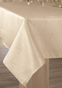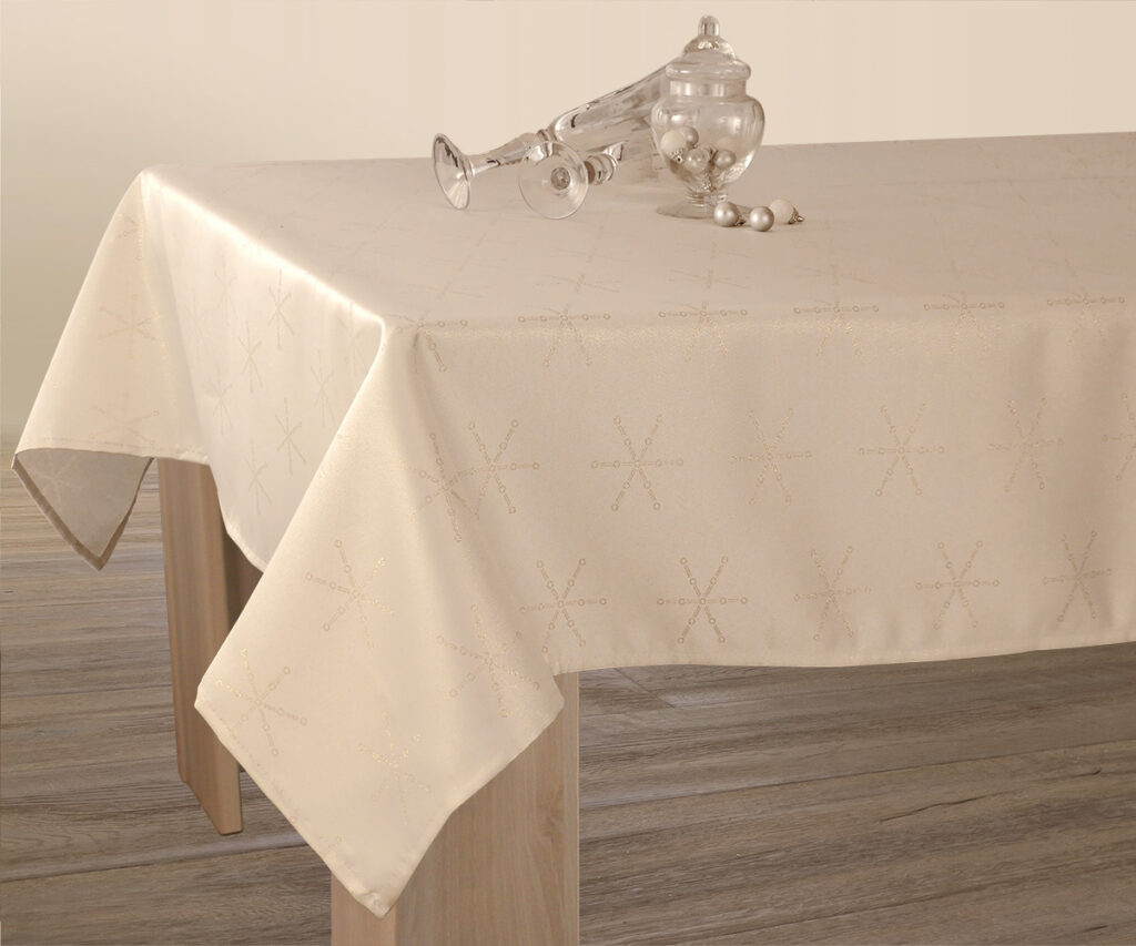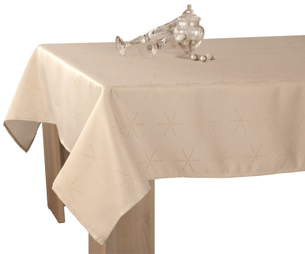 Cette nappe tissée de fils métalliques brillants vous ravira par sa simplicité d'entretien. Elle est idéale pour vos repas de fêtes ! Traitée déperlant et anti-tache, elle peut être lavée en machineà 30°, ses couleurs sont résistantes, elle ne déteint pas. Après un essorage léger, ne la passez pas au sèche linge, elle sèche très rapidement ! Cette nappe peut-être repassée sur l'envers en faisant bien attention à la température du fer qui ne doit pas être trop chaud, adapté à une nappe en polyester. Elle est finie avec un ourlet pour un tombé impeccable. Composition : 8% Métal 92% Polyester - Entretien facile : lavage en machine à 30° , essorage léger, sèche rapidement, repassage superflu. Ne pas exposer au soleil de manière prolongée.
