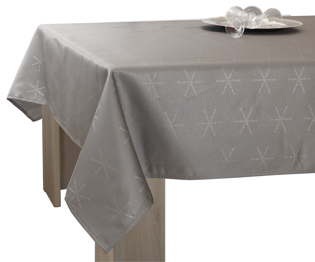 Cette nappe tissée de fils métalliques brillants vous ravira par sa simplicité d'entretien. Elle est idéale pour vos repas de fêtes ! Traitée déperlant et anti-tache, elle peut être lavée en machineà 30°, ses couleurs sont résistantes, elle ne déteint pas. Après un essorage léger, ne la passez pas au sèche linge, elle sèche très rapidement ! Cette nappe peut-être repassée sur l'envers en faisant bien attention à la température du fer qui ne doit pas être trop chaud, adapté à une nappe en polyester. Elle est finie avec un ourlet pour un tombé impeccable. Composition : 8% Métal 92% Polyester - Entretien facile : lavage en machine à 30° , essorage léger, sèche rapidement, repassage superflu. Ne pas exposer au soleil de manière prolongée.